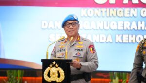 Jakarta – Wakil Kepala Kepolisian Negara Republik Indonesia (Wakapolri) Komjen Pol. Prof. Dr. Dedi Prasetyo, S.H., M.Hum., M.Si., M.M., memimpin Upacara Purna Tugas dan Penganugerahan Tanda Jasa bagi 139 personel Polri Kontingen Garuda Bhayangkara Satuan Tugas Formed Police Unit (FPU) 6 MINUSCA. Upacara ini digelar dalam rangka menyambut kepulangan mereka setelah menyelesaikan pengabdian selama satu tahun dalam misi pemeliharaan perdamaian Perserikatan Bangsa-Bangsa (PBB) di Bangui, Republik Afrika Tengah.